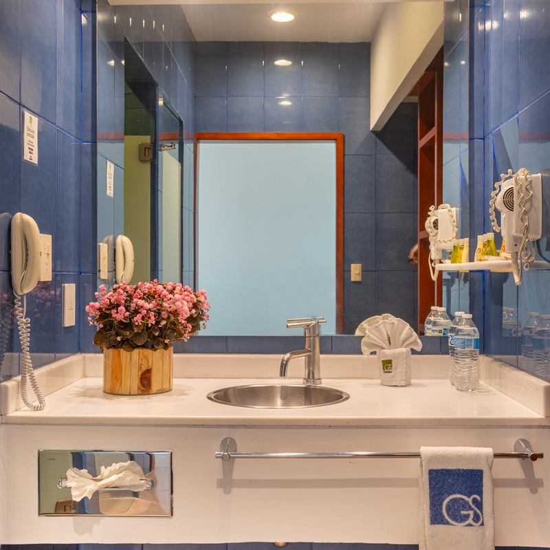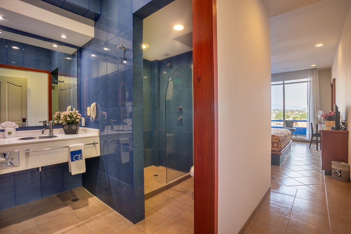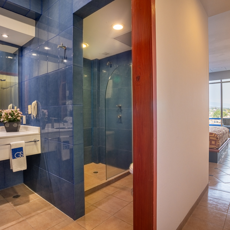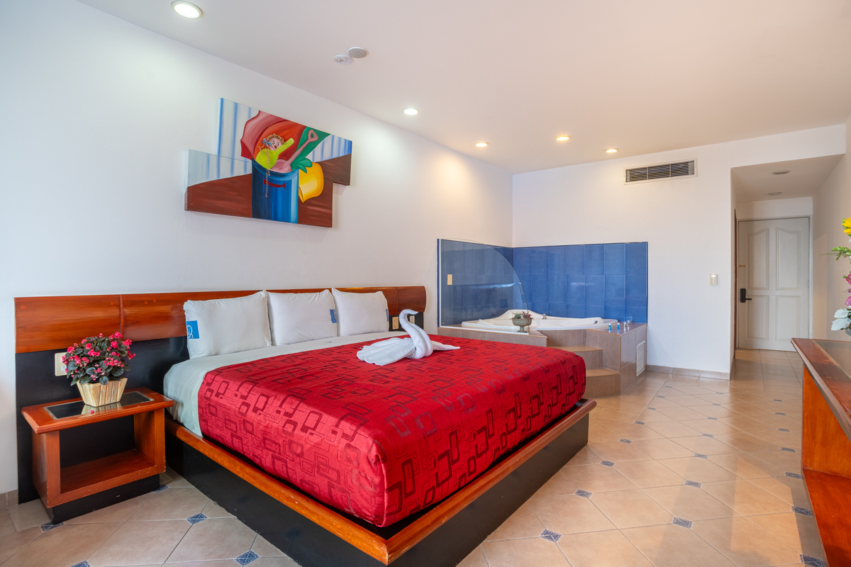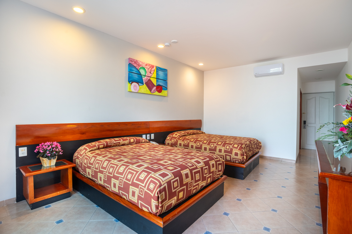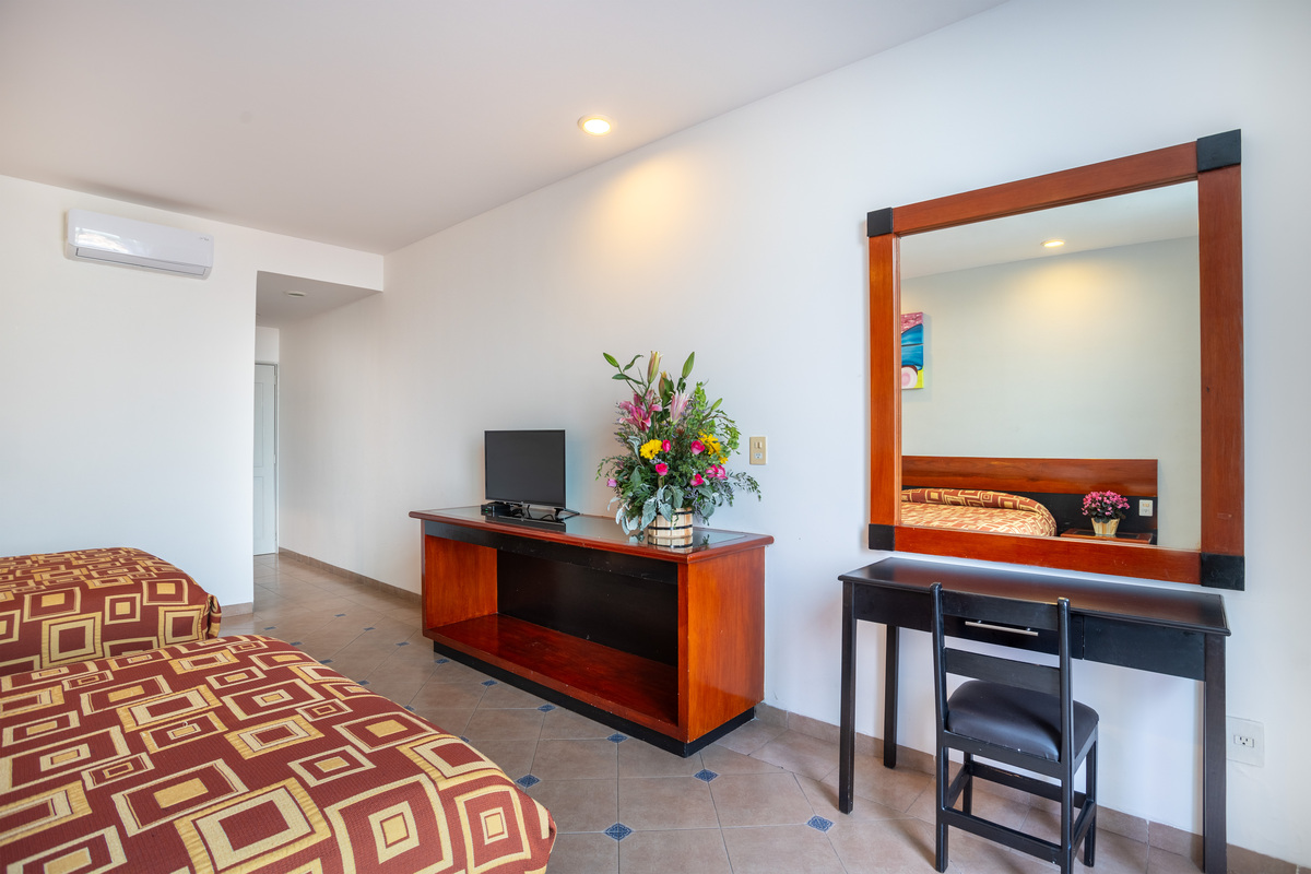 El espacio necesario para ti en modo individual o por pareja, incluye una cama King size, TV de pago, internet, equipado con guarda ropa, baño completo, algunas de estas habitaciones cuentan con balcón y una pequeña sala de estar además de aire acondicionado, estamos seguros de que la vas a disfrutar